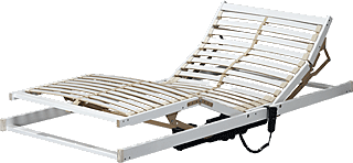 El-justerbar elevationsbund med nakke-, rygg- og benløft. 2 motorer sikrer optimal betjeningskomfort. Trinnløs instilling ved hjelp af fjernbetjening. Midtsoneforsterkning med 5 dobbeltlameller, hvor hardheden kan indstilles. 28 fleksible trefjederlameller.